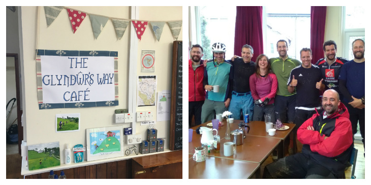 The absolute best breaks are the food breaks. At lunch in Llanbadarn Ffynydd, Mike was able to break known culinary boundaries with a pork pie, Cathedral City cheddar, family bag of onion rings and Turkish Delight combo. Beat that Heston. This feast was topped by Glyndwr's cafe in Bwlch-y-Sarnau where the gorgeous ladies had opened up specially for us, serving tea in proper pots and warm home made scones with lashings of cream and jam, or was that jam and cream?